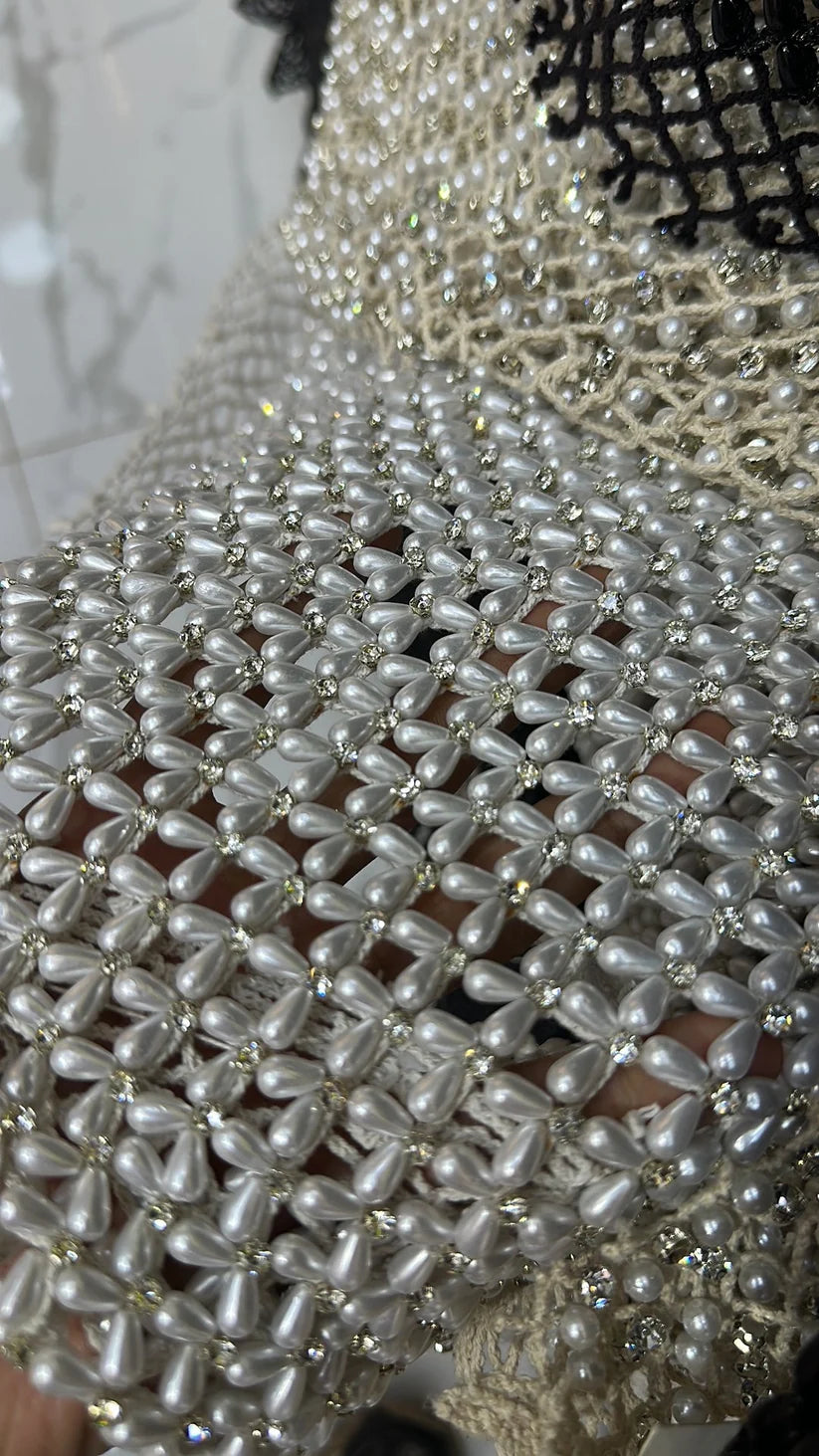 Enhance your creations with our exquisite Floral Pearl Lace, perfect for adding a touch of elegance to any garment or craft. Featuring delicate floral patterns intricately woven with shimmering pearls, this lace is a luxurious choice for weddings, evening gowns, veils, home decor, and more. The high-quality craftsmanship ensures durability while maintaining a soft, delicate feel.